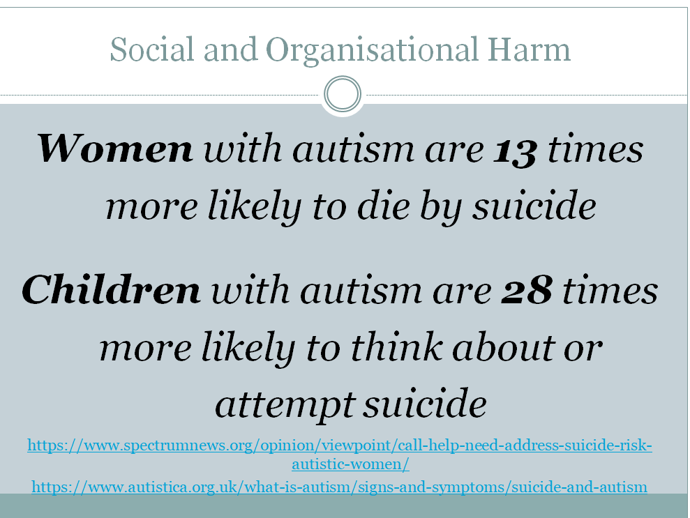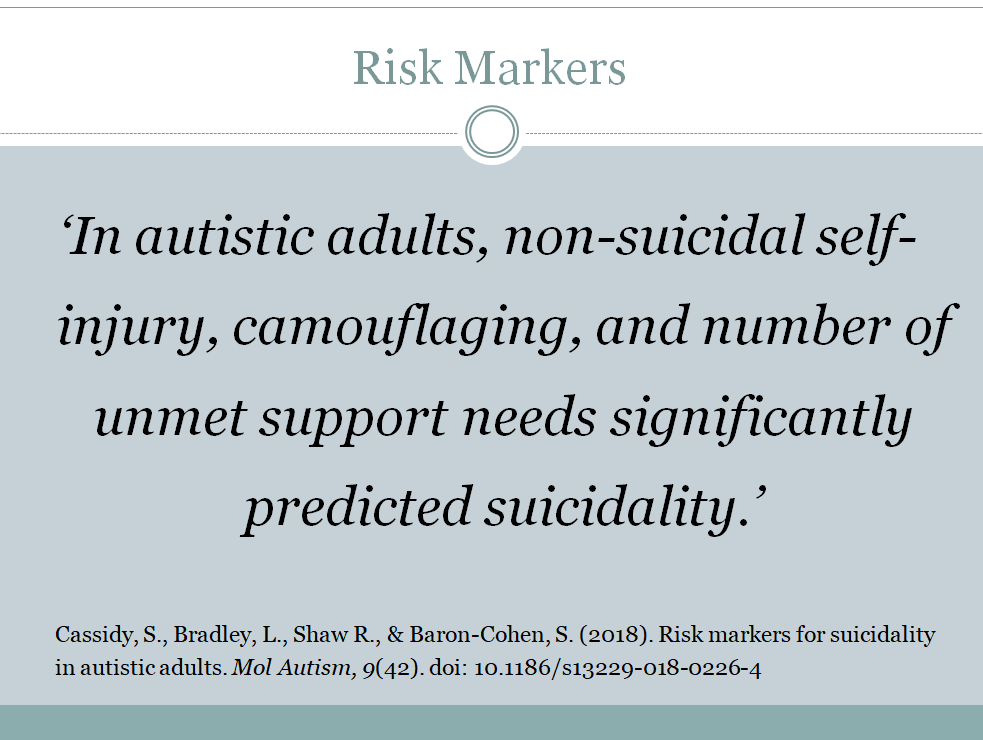 And particularly relevant for us as teachers, children with autism are 28 times more likely to think about or attempt suicide, 28 times more likely.
